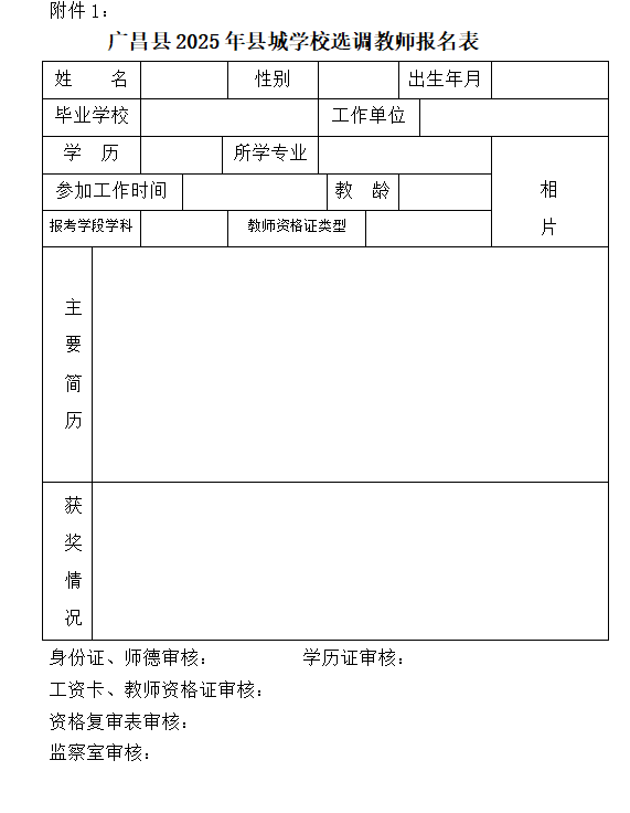 附件1:广昌县2025年县城学校选调教师报名表